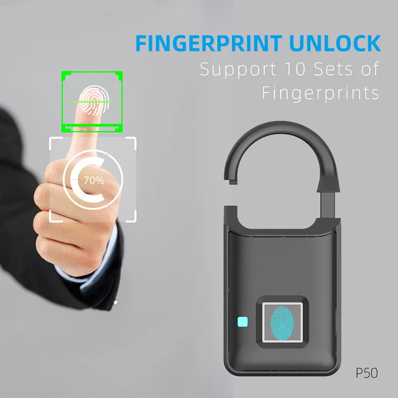 Super Long Standby Anti-theft Smart Fingerprint Lock Electronic Padlock for Traveling Suitcase Home