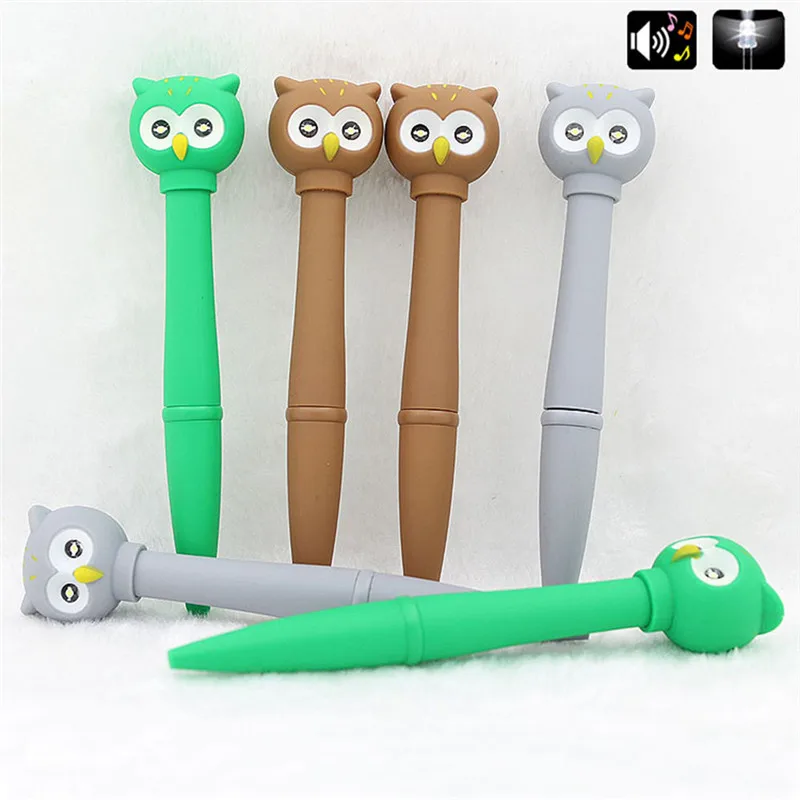 Sale Price of 1Pc Novelty Voice Light Ballpoint Pen Kawaii Owl Multifunctional Electronic School Supplies Writing
