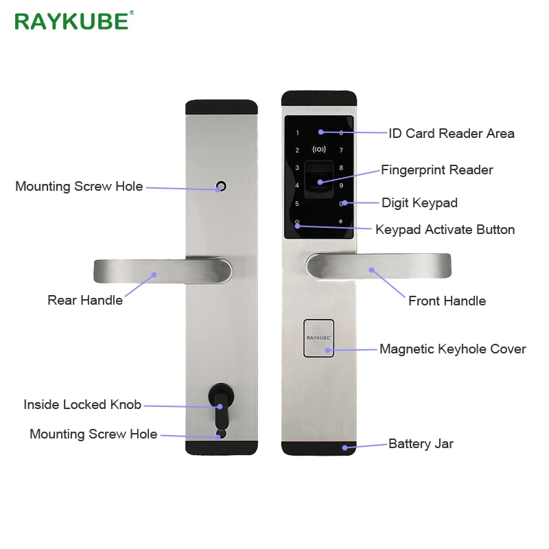 Addition Information of RAYKUBE Electronic Door Lock With Fingerprint / Password / ID Card / Mechanical Key 4 In 1 Opening